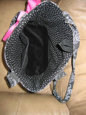 I have been wanting to make this shape purse for a bit...so I used up the rest of the black and white fabric I had...added a pink interior and...voila. I really like the size and the shape....and I think it turned out really cute! I myself needed a black and white purse....so I used it last night...we (several ladies from the area) went to see a play called Shirley Valentine and one of the ladies wanted me to make one just like it...since I was out of fabric....I just sold her this one (since it I truly had just finished sewing it up hours earlier). Now...I've got to make myself another one!!!